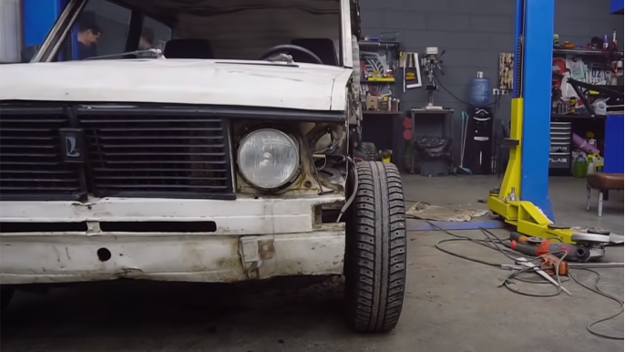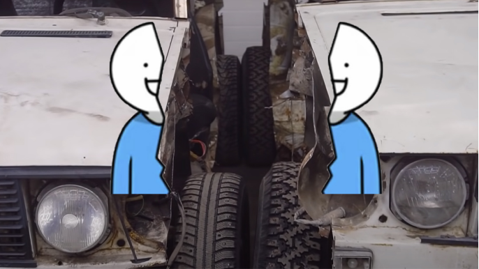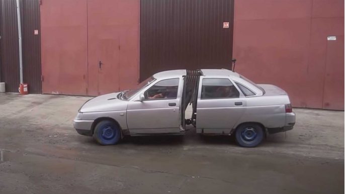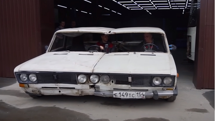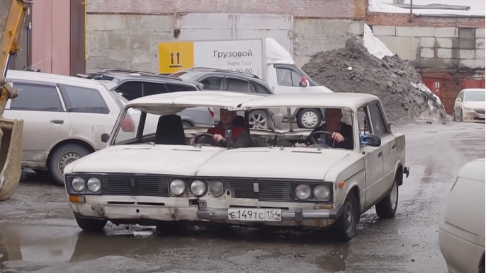 事实上,两车的半轴是被焊在一起的,也就是说,一侧方向盘转动的时候,另一侧也会跟着转,这才是能让宽体拉达开起来的“秘诀”。