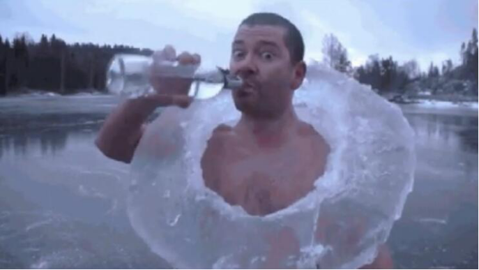 更离谱的是,咱们北方人大冬天也冷得眼泪流,人家却在冰雪地喝白酒!再箍上一个本土特色游泳圈,简直是男装版冰雪奇缘再现,透心凉!
