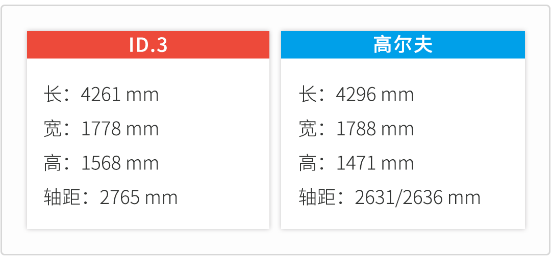 车身尺寸方面,长宽高为4261*1778*1568mm,轴距为2765mm。从以上数据来看和现款高尔夫的尺寸大致相同,可以理解为微胖型的电动高尔夫,但相比之下,ID.3的后排空间的表现可能会更好(毕竟轴距摆在那),起码不会显得过于局促。