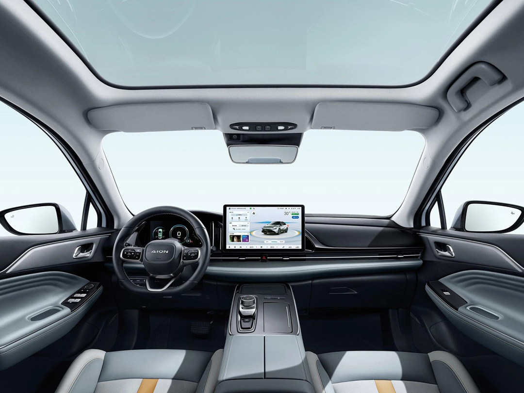 AION S Plus还搭载了全景天幕,该天幕自带变色效果,通过改变自身的颜色去控制阳光的透过与否。话虽如此,但如果想要夏天时能够有较好的隔热效果,还是贴个玻璃膜比较妥当。