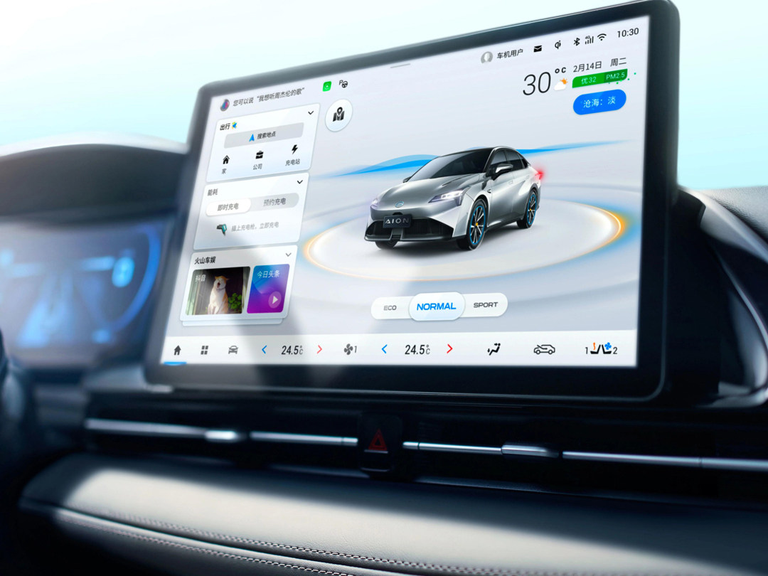 大尺寸的显示屏在AION S Plus内不会显得突兀,相反,其UI设计得比较合理,如果将深色作为背景制造一定的视觉误差,让使用者感觉屏幕边框较窄,增强使用体验。