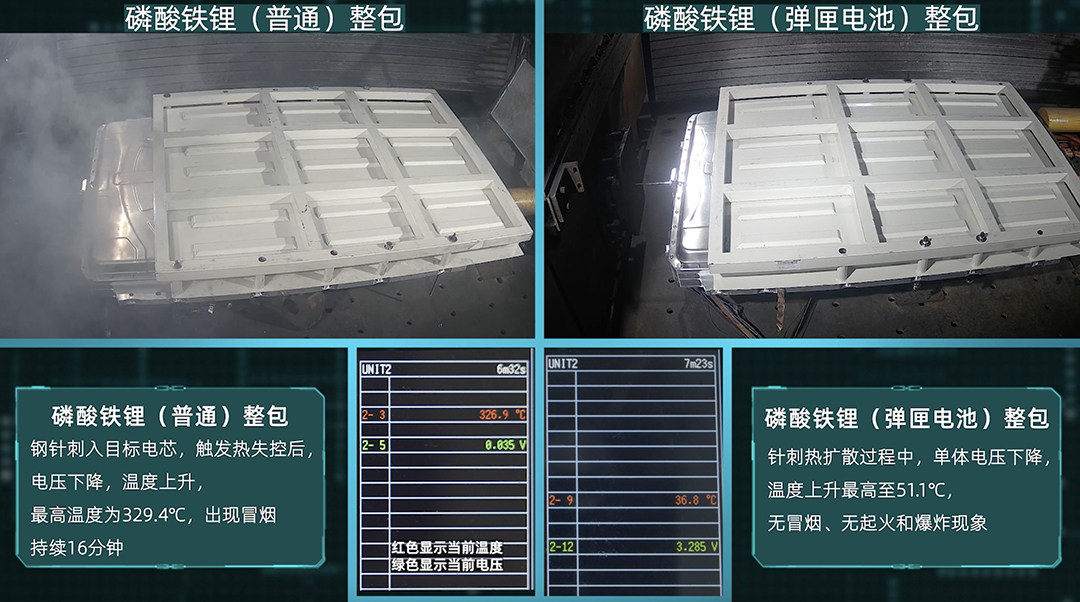 在针刺实验中,弹匣电池技术能够使三元锂电池和磷酸铁锂电池均无起火、爆炸现象,对电池热失控有明显的抑制作用。