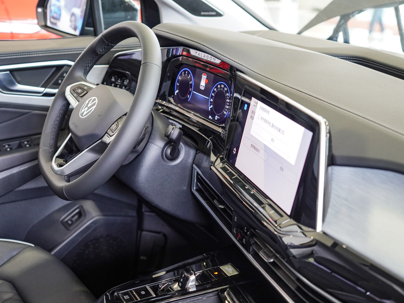 大众揽境采用了大众家族式最新的数字化座舱布局,不过在细节上融入了旗舰级SUV该有的豪华质感,分别在仪表台和门板处采用大量的软质PU皮覆盖,钢琴烤漆材质同样没落下。