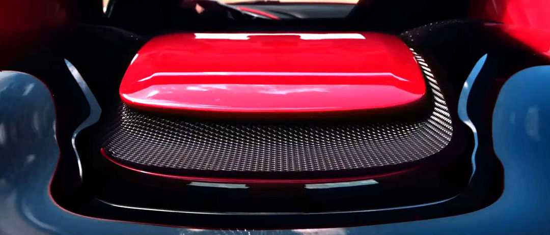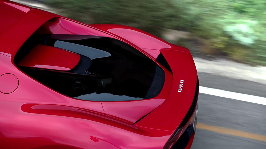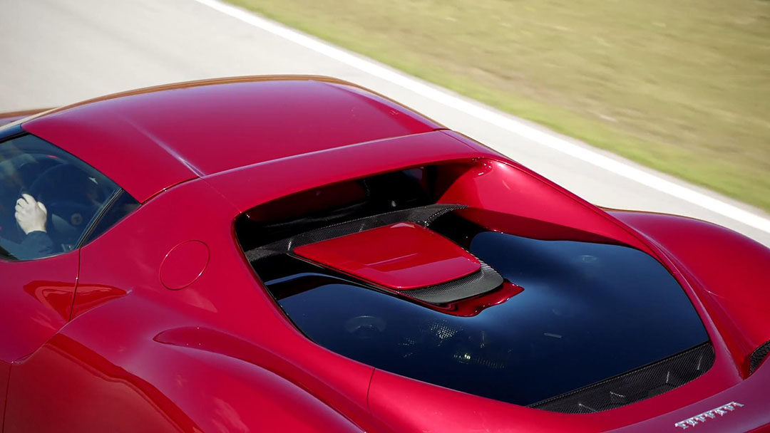 虽然由于采用涡轮安置在汽缸夹角中的设计,原本标志性的红色缸盖被替换成银色的涡轮隔热片;但现在有了这个加入红色凸起设计的引擎盖,又似乎找回了一些法拉利经典超跑的味道。