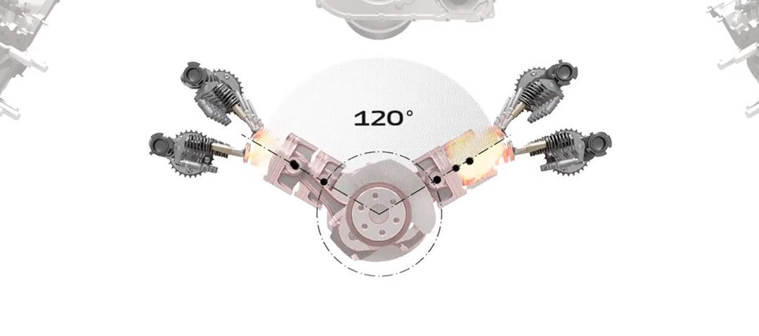 首先它采用了120度汽缸夹角,两个涡轮增压器被放置在V型夹角中间,从而实现了引擎体积的显著缩减,同时还缩短了空气从涡轮增压器输送到燃烧室的距离,提供了更高的进气效率。