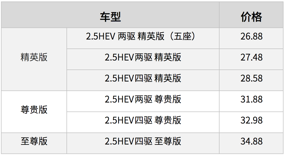 6月25日,全新一代汉兰达正式上市,共推出6款车型,提供5座和7座版本,搭载2.5L混动系统,官方指导价26.88-34.88万元,起步价比预售价低了1.12万元,比现款的2.0T车型贵了2.9万元,整体来看还是比较合理。