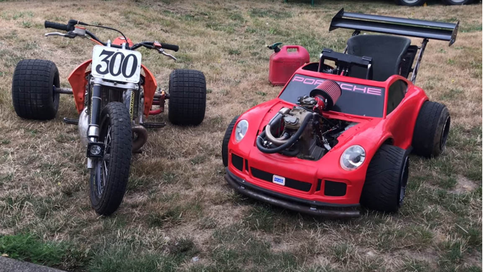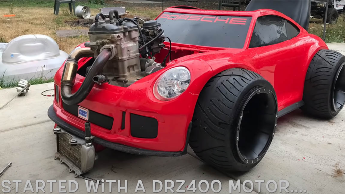 起初他试了铃木耐力越野摩托——DRZ400的方案,可后来不得不放弃,至于原因,我猜是因为走位太困难,甚至有点遮挡视线,所以不适合小巧的911 GT3。