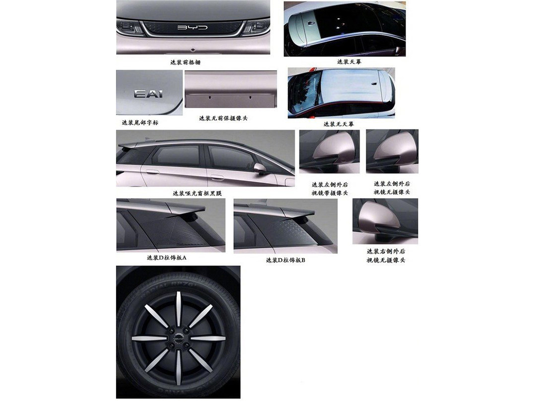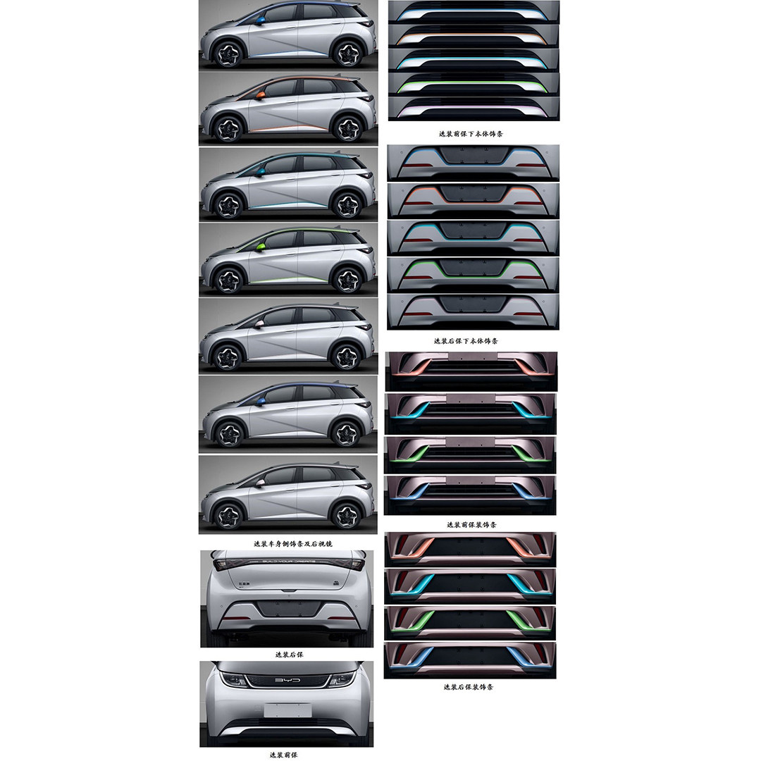 从已曝光的申报信息可以看出新车将会提供至少两款铝合金轮毂、三款D柱饰板、两款中网、两款前后包围、四种前后包围饰条与后视镜外壳颜色等等可选外观配件,高配车型还将配备全景天幕。而可选装摄像头的后视镜显示海豚的高配车型将会提供360度全景影像、盲区辅助这样的实用配置。更值得注意的是,新车还会在车尾贴上“EA1”标识,似乎预示着海豚将不仅仅是一款单一车型,而可能在以后发展为一个系列。