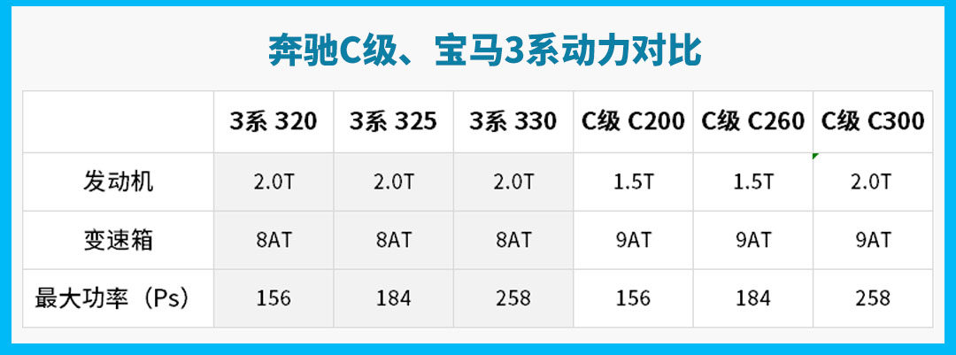 表面上看,奔驰C级和宝马3系的动力参数都一样,但实际的体验却差别较大,毕竟宝马3系的发动机排量更大,而且算的轮上动力,所以提速更有劲,加速更快,也不会有小马拉大车的吃力感,油耗反而比奔驰C级更低。