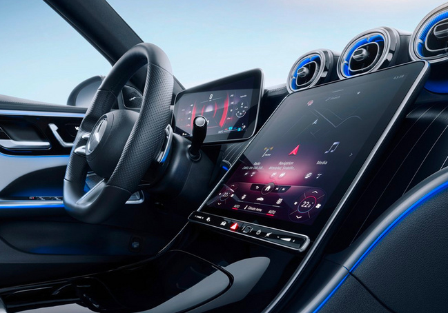 不可否认,奔驰C级在豪华氛围的营造上确实有一套,64色内饰氛围灯、12.3英寸的液晶仪表+10.25英寸的悬浮式中控大屏、标志性的钟表、充满了仪式感的怀档、大面积软性材质+木纹饰板的装饰等等,豪华气息由内而外散发开来。