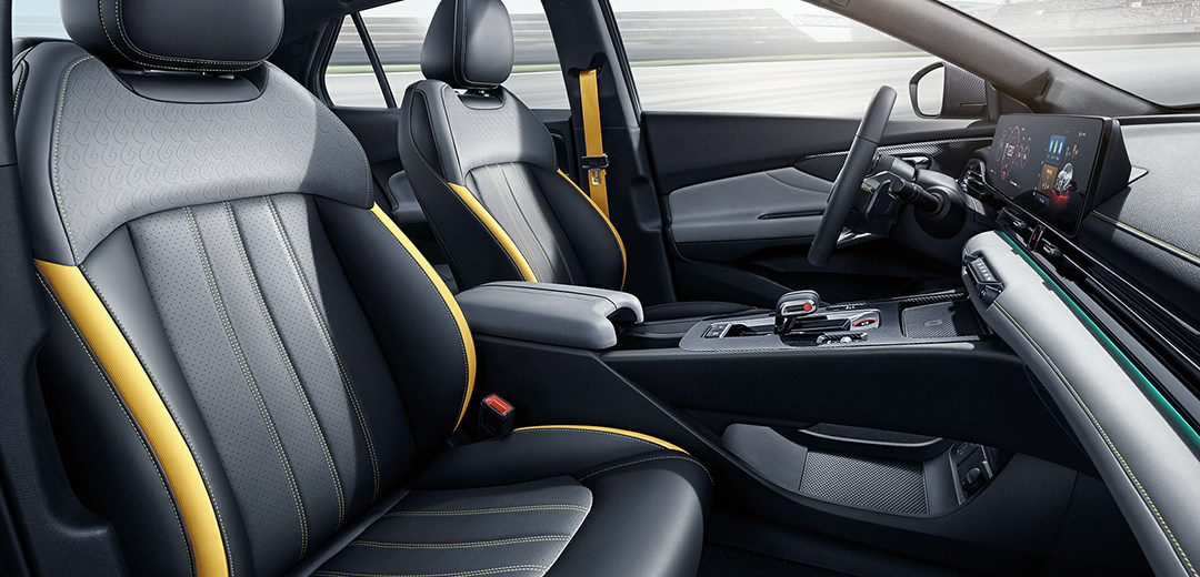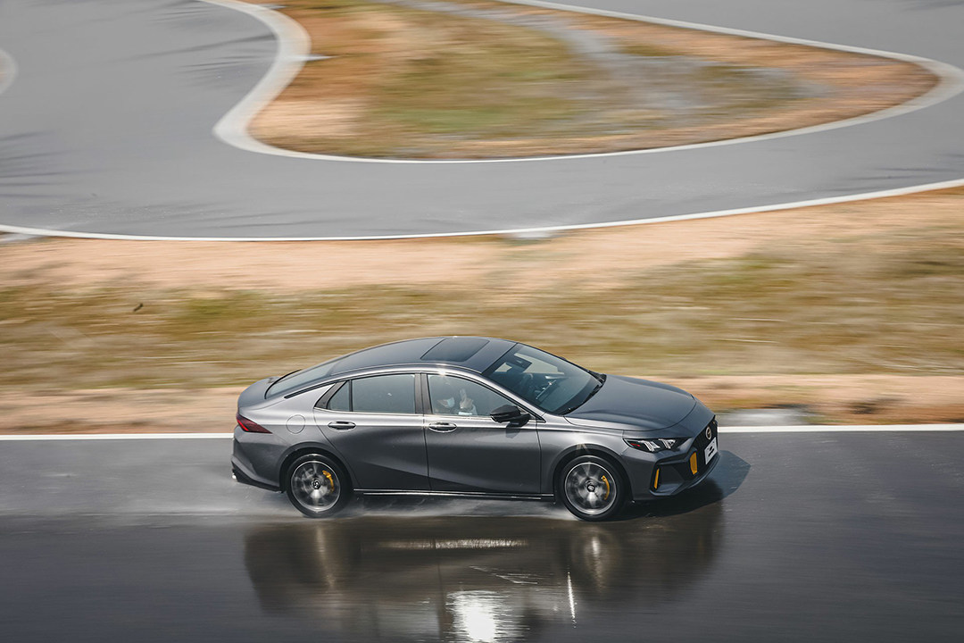 何况影豹整体采用了低趴的轿跑姿态设计,车身比例感很好,还有黄色的卡钳和四出真实排气尾喉,整车风阻系数做到了Cd 0.26,就论这副姿态,已经可以跟领克03+和思域HATCHBACK车型放一桌做比对了。