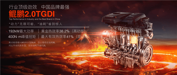 3、 搭载390T鲲鹏动力2.0TGDI发动机,最大功率187kW