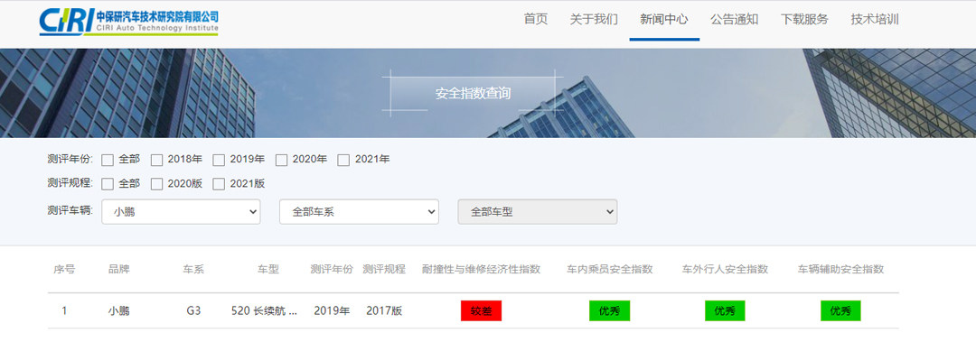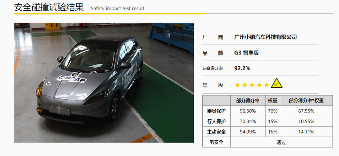 小鹏G3 C-NCAP碰撞测试结果