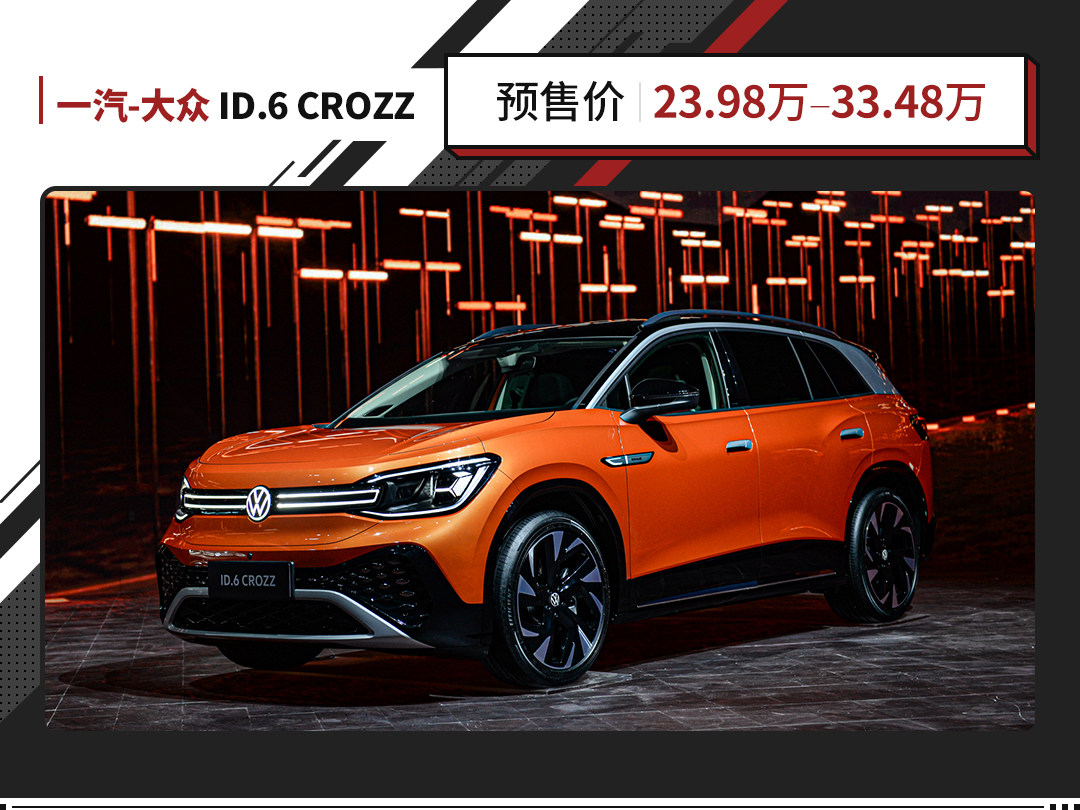 7月5日,上汽大众ID.6 X的姊妹车型一汽-大众 ID.6 CROZZ正式公布价格并接受预订,新车基于MEB模块化平台打造,定位为中大型SUV,综合补贴后价格23.98万—33.48万元,推出五车型共三个续航里程版本,其中最高NEDC综合工况续航里程可达565km。