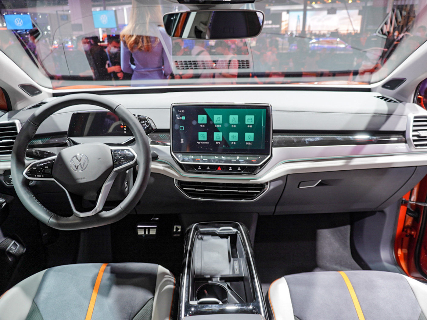 进入车内,一汽-大众 ID.6 CROZZ延续了ID家族的设计风格,新车搭载了5.3 英寸数字仪表和12英寸中控屏、三幅式平底方向盘以及多个触控按键,将简约风格展现得淋漓尽致,同时还为车内营造出极强的现代美感。