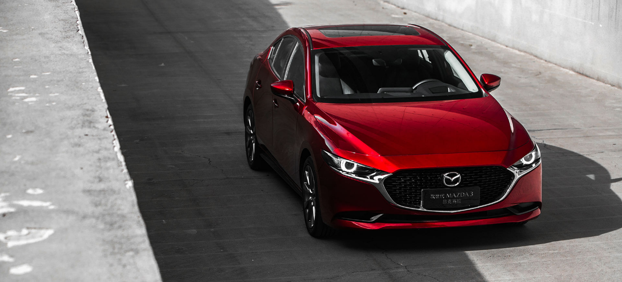 首先我们看看本次的主角马自达3昂克赛拉,它的外观相较于上一代车型来说,比较简洁,没有多余的元素干扰整车观感,中间的盾形中网也比上一代更加扁平,中网镀铬饰件和两侧大灯相连接,形成了有气场的前脸。