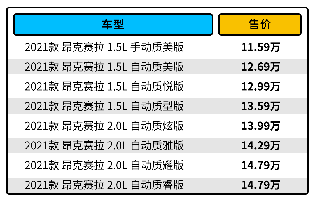 售价方面,马自达3昂克赛拉根据不同配置,它的售价区间从11.59万到18.99万元不等,目前在广州地区,1.5L自吸版本拥有4000元优惠,2.0L和X压燃尊容型拥有6000元优惠。