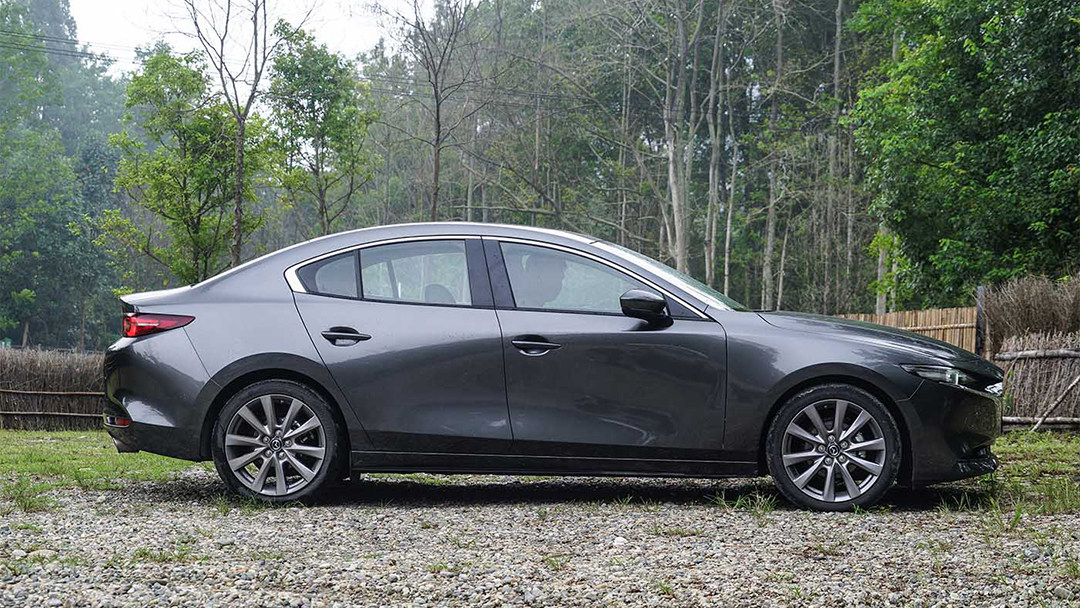 来到侧面,现款马自达3昂克赛拉没有了以往向上拉的观感,采用了与车头一致的扁平化设计,前翼子板和后翼子板的两条腰线看似分离,却藕断丝连,让它形成了一种比较现代的观感。