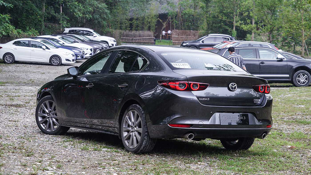 尾部是马自达3昂克赛拉最大变化的地方之一,整体造型非常简约,甚至为了扁平的观感,还把车牌进行了下移,再加上双边单出排气,尾部的造型就两个字“干净”。