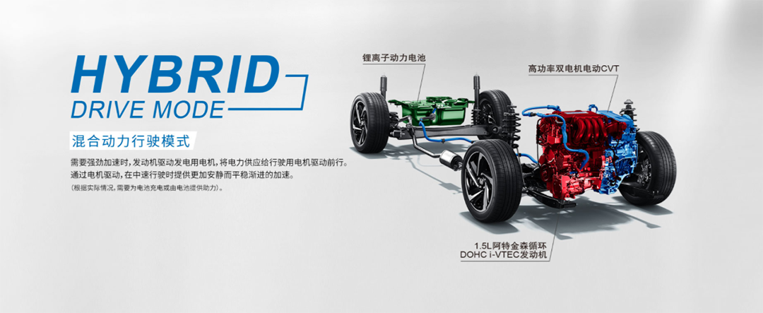 本田i-MMD则有着EV纯电动模式,在电量充足且负荷低、时速低于100km/h基本为该模式行驶,发动机处于“停机”状态,此时静谧性最佳。其次是发动机、电动机共同运行的“混合模式”,发动机可以为电动机提供电能,也可以为电池充电,在电量不足或急需动力时采用,基本覆盖了80%的使用。最后则是“发动机直驱模式”,发动机直接带动车轮,成为了一辆“纯燃油车”,在高速巡航基本为该工况。