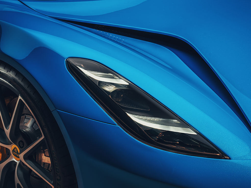 外观上新车借鉴了路特斯纯电动车型“Evija”,相似度高达90%,两侧大灯组内部的双层LED日间行车灯点亮后极具辨识度。