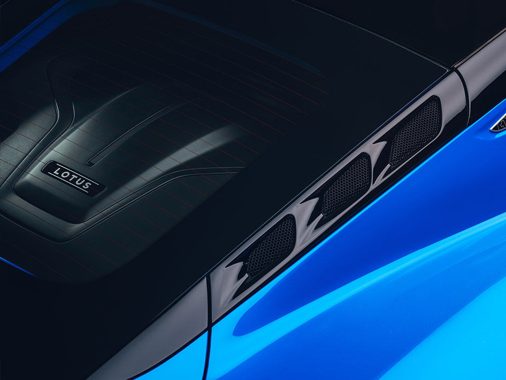 尾部方面,硕大的发动机散热口加上简约的设计风格,让整车看起来更具有未来科幻感,并且在后挡风玻璃下还隐藏着最核心的部件发动机,没错,EMIRA依旧采用了中置发动机的布局,达到更好的车身配重比,并且整车的重量仅为1405公斤。