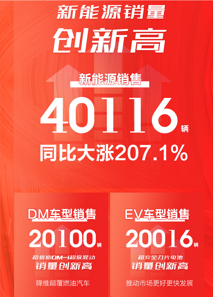 据了解,比亚迪2021年新能源车型的销量目标为40万辆,其中纯电动车型和插电式混合动力车型各占一半;目前EV车型还差约10.66万辆,插电式混合动力汽车还差约14.33万辆。如果按照目前比亚迪的销量速度,不仅能轻松完成今年的销量目标,甚至还能突破年度销量目标。
