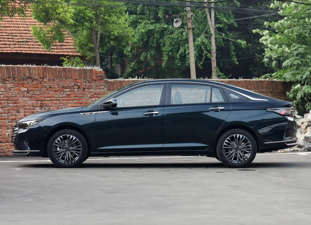 车身侧面,新车采用了年轻人最喜欢的溜背式造型设计,加上简洁的车身线条,整车显得特别优雅修长;另外,新车将会全系标配17英寸五幅式轮圈,并采用枪灰色的配色,与深墨蓝的车身颜色极为搭配,完全长在买买君的审美上。