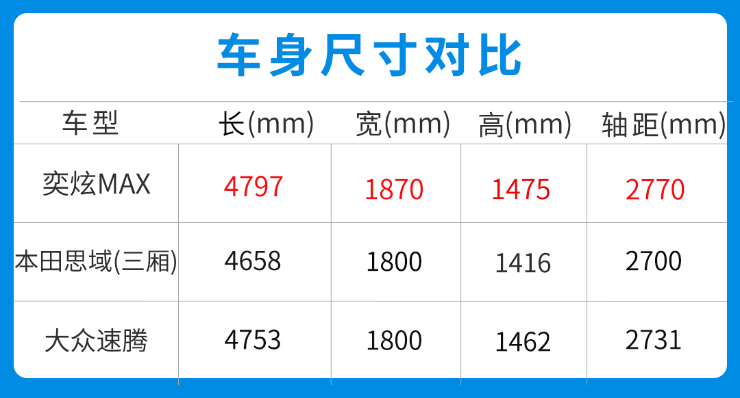 而在尺寸方面,其长宽高分别为4797/1870/1475mm,轴距达到了2770mm,虽定位为紧凑型轿车,但奕炫MAX的尺寸显然是能够到中型轿车的门槛,特别是1870mm的宽度更是傲视群雄。定位为中大型轿车的宝马5系(宽1868mm)和奔驰E级(宽1860mm)都不如它,更别说同级别车型。此前官方表示奕炫MAX拥有“同级别最宽车身”是一点都不假,这种降维打击在国产车身上屡见不鲜。