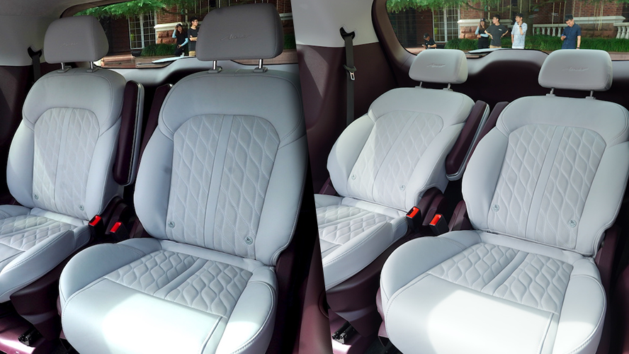 它不仅是独立的座椅设计和一二排的座椅一样,都采用的是Nappa的皮质包裹,并且还能够实现前后移动,座椅靠背能调节为半躺状态,更离谱的是,它还配备了座椅通风/加热的功能,细节之处还新增了第三排阅读灯,真正意义做到全车无差别待遇。