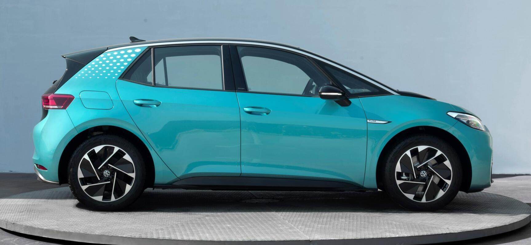 上汽大众ID.3的车身线条十分流畅,并采用了双色设计,再搭配全新造型的轮毂,让新车看起来运动感十足。