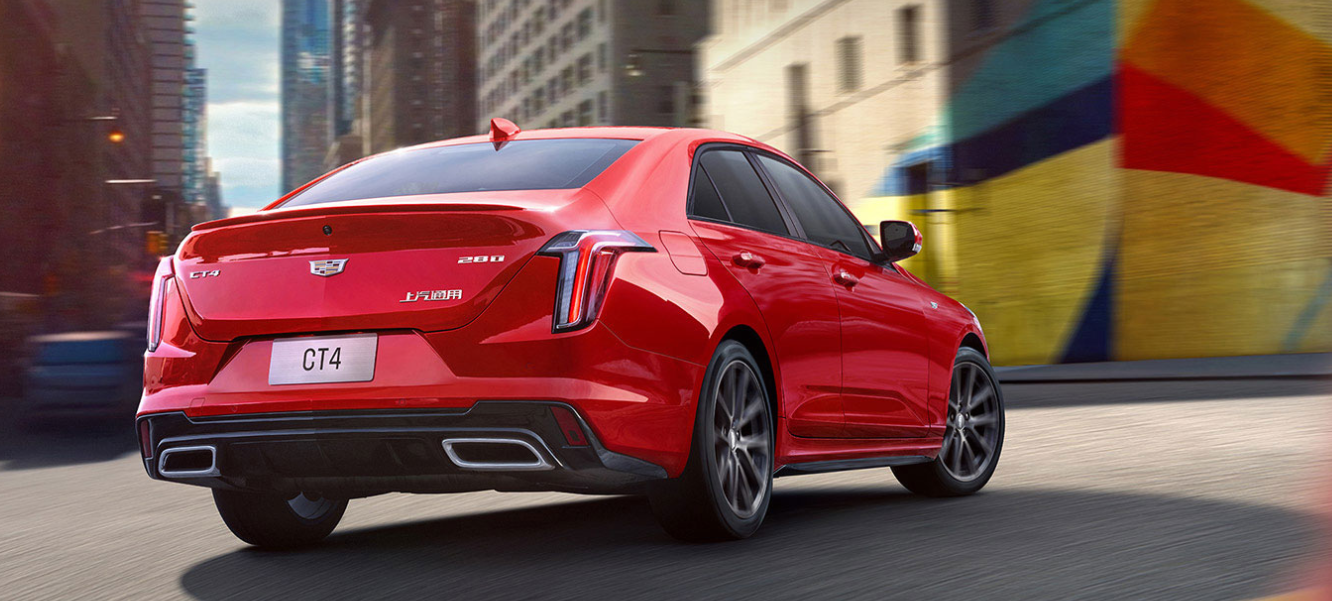 凯迪拉克CT4外观方面源自于概念车ESCALA的设计元素,两侧獠牙LED日间行车灯带配合前大灯极具辨识度,简洁明快的车身腰线从车头一路延伸至车尾,双边共两出的排气布局彰显出凯迪拉克CT4对于运动和性能的追求。