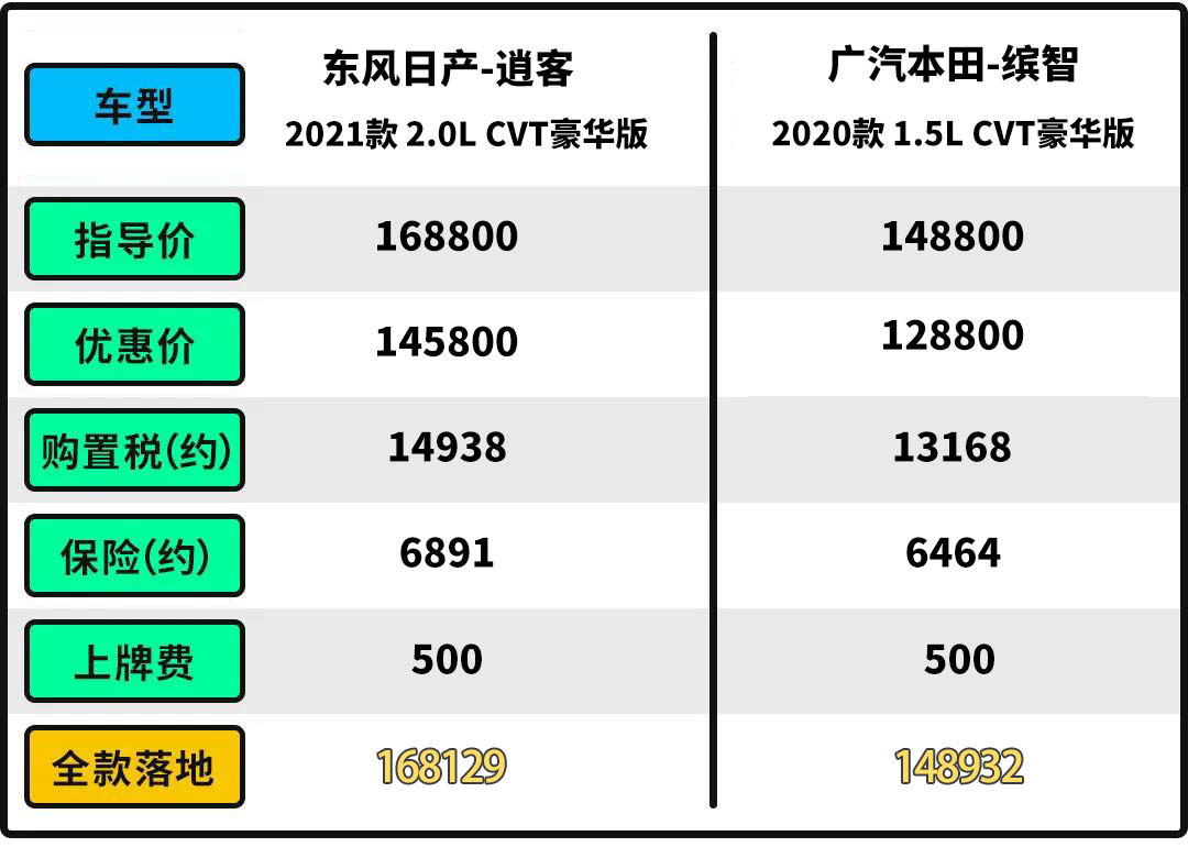 而在售价方面,虽然定位是紧凑型SUV的日产逍客,但实际算下来并不会比小型SUV的本田缤智贵多少。