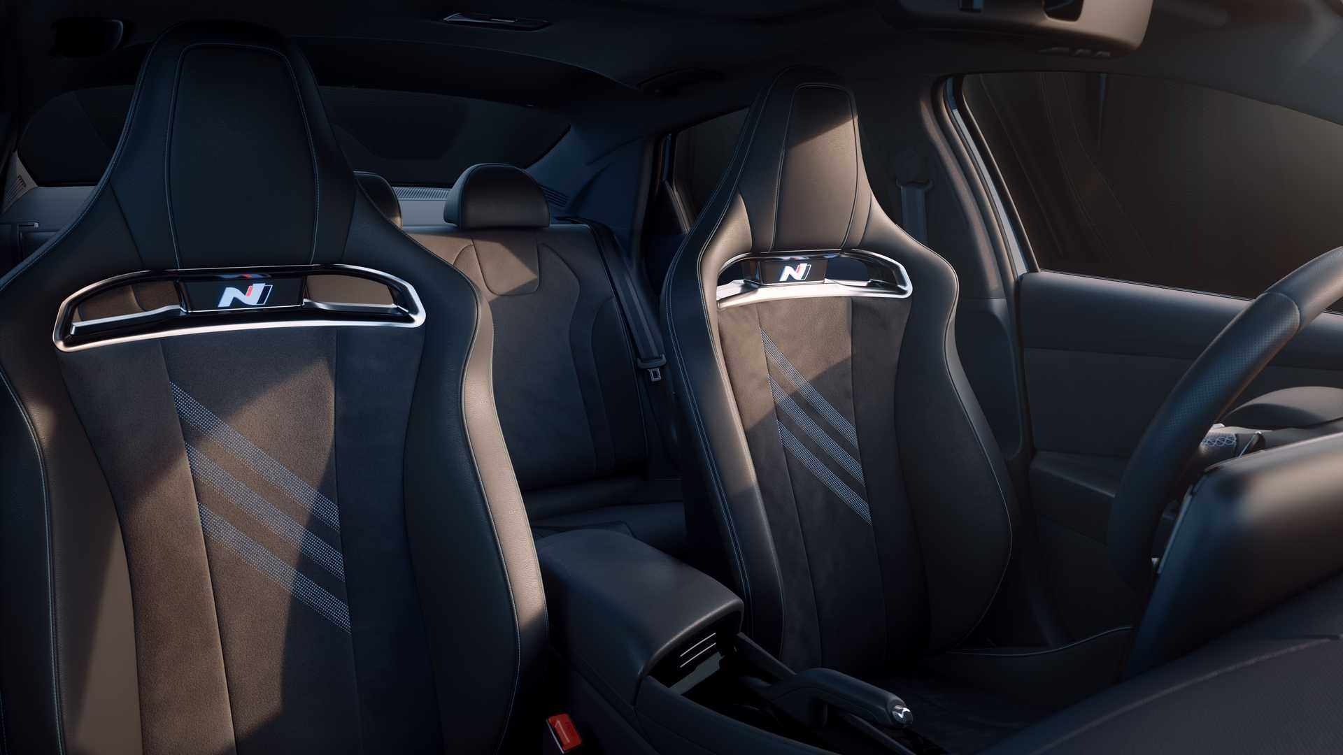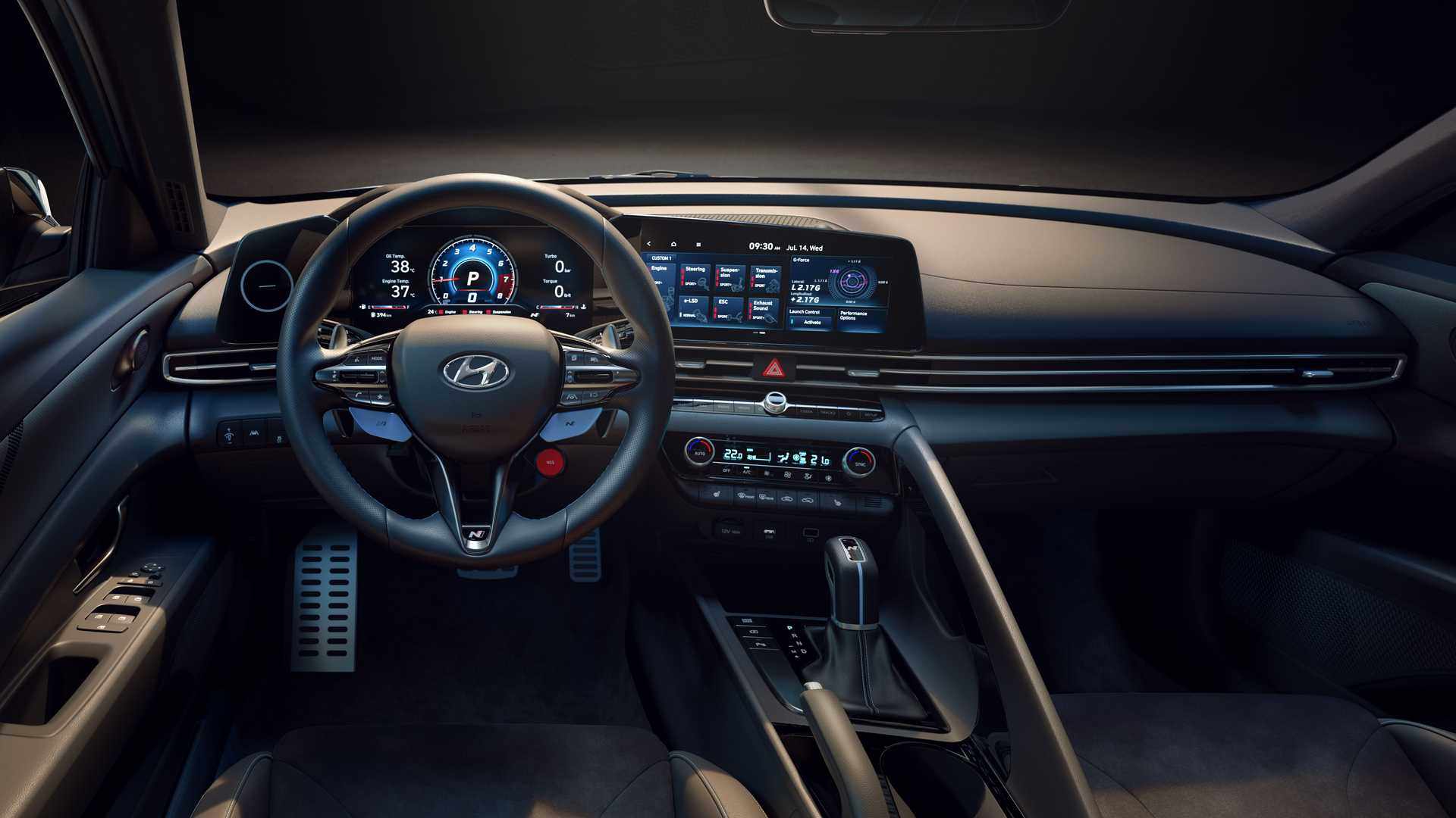 现代在新车的操控上,也下了不少功夫。伊兰特 N 使用集成驱动桥,与其参加WRC的赛车不同。现代表示,这种布置更能承受横向载荷,同时还能减轻前部的重量。14.1 英寸前刹车盘并带有升级的刹车片和改进的冷却管道,有助于提高速度。悬架中采用了升级的衬套和隔振器,以及额外的底盘支撑和坚硬的后杠,以增加刚性。除此之外, N Grin Shift (NGS) 的功能可暂时提高发动机的增压压力,为短距离冲刺提供额外的 10 马力。