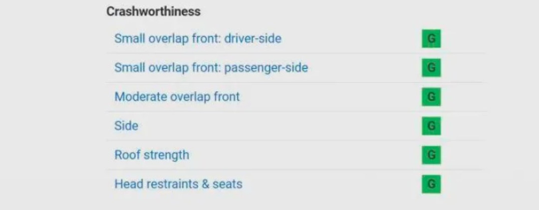 除了出众的颜值、过硬的产品力,伊兰特的安全性也值得称赞,美国公路安全保险协会(IIHS)对美版第七代现代伊兰特进行了碰撞测试,无论是主副驾25%偏置碰撞、40%的正面偏置碰撞,还是侧面碰撞、车顶抗压强度及头枕/座椅等测试,都拿下了“Good”评级,也就是优秀的成绩。当然这是美版车型,很多人认为国产版车型会减配,真与假买买君不好评判,可等待中保研碰撞测试成绩。