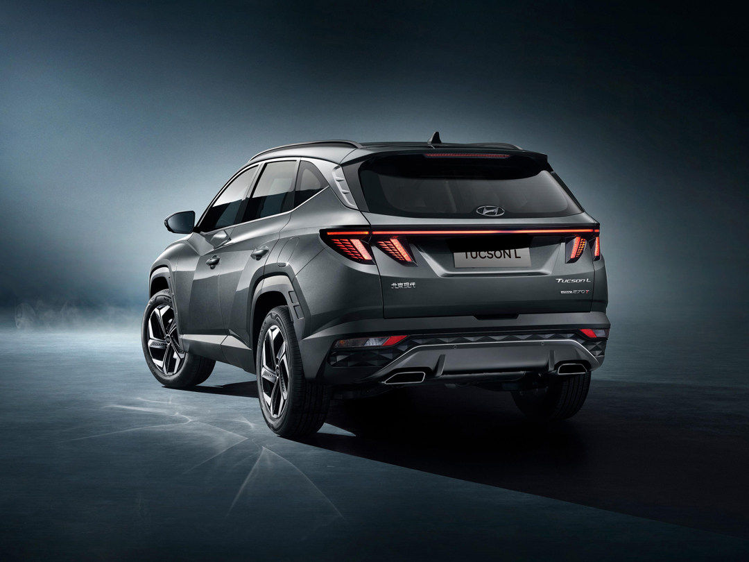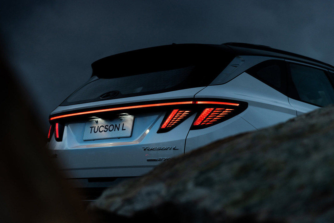 第五代途胜L尾部设计同样出彩,车尾中间采用了时下流行贯穿式尾灯设计,两侧鹰爪式尾灯设计让人过目难忘,提升该车车尾部辨识度。细节方面,现代Logo设计在后档上,尾部下方的防刮材质加入菱纹进行处理,与车头几何中网格栅相互呼应,双边双出排气时刻告诉他人我为运动而生。