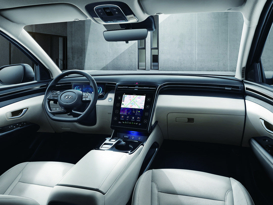尽管第五代途胜L外观极具视觉冲击感,但途胜L的内饰设计偏向于简洁风,并没有太多复杂的设计元素,贯穿式空调出风口让整车视觉层次感分明,10.4英寸中控大屏功能十分丰富,可实现天窗、空调、座椅通风等系列操作,功能性扛扛的。