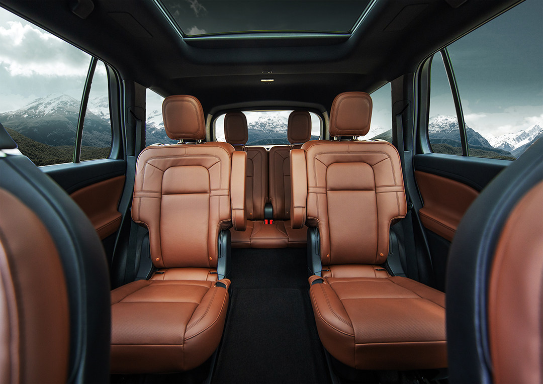 在新款林肯飞行家的座舱里,三排座椅不再是鸡肋,充足的腿部空间意味着每一位乘客都可共享豪华。
