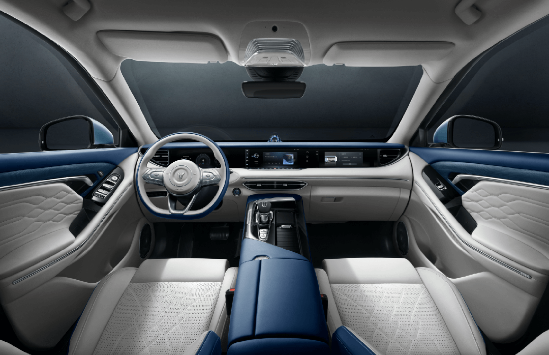 内饰部分在今时今日来看较为“常规”,三块屏幕横贯左右,同时还可以根据不同的驾驶模式自动升高和降低,噱头十足。