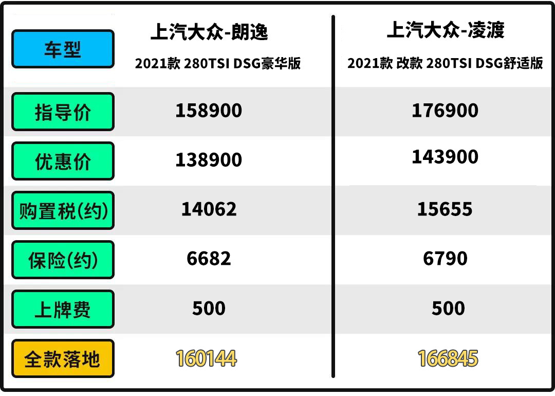 当然作为与朗逸同属A级车市场的产品免不了会被消费者拿来对比,乍一看朗逸9.99-16.19万的售价确实要比凌渡14.99-18.69万的售价更便宜。但朗逸包含有更入门的1.5L动力版本以及朗逸起航这类改名后同堂销售的老款车型,而要比1.4T版本,朗逸14.69-16.19万的售价与凌渡差距其实并不大。