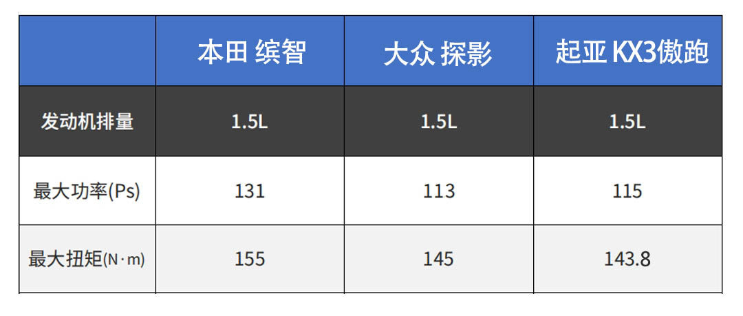 不过在动力方面,KX3傲跑的表现就相对一般了,全系匹配了一台最大功率115Ps的1.5L发动机以及CVT变速箱,在一众1.5L发动机中,其账面数据表现确实不出彩,尤其是对比本田缤智搭载的1.5L发动机(最大功率131Ps),账面数据和动力储备确实有着一定的差距。