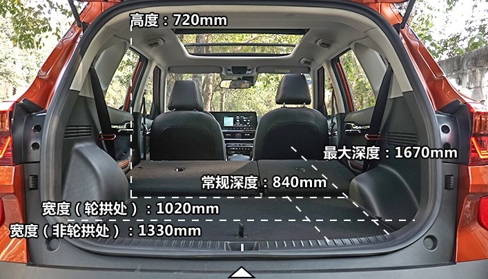 而在空间表现上该车最值得称赞的地方还是储物空间方面。后座在使用的情况下进深达到840mm,最大宽度也能达到1330mm,常规容积达到498L;而放倒后能够形成接近纯平的地台,进深能够达到1670mm,除了760mm的后备箱离地间隙相对偏高外,基本没有值得吐槽的点。
