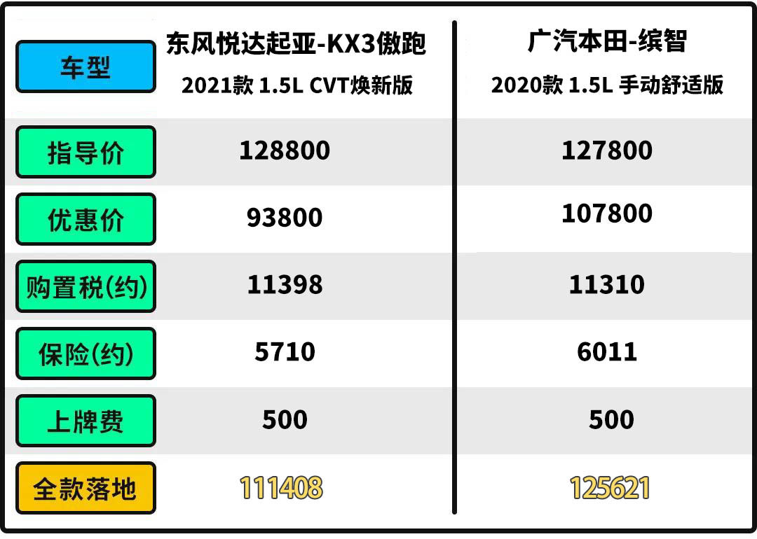 以指导价12.88万的1.5L CVT焕新版为例,车辆优惠后的裸车价仅9.38万,而结合保险和税费等最终落地也仅11.14万元。这个价格你甚至连缤智的入门版车型都买不到,但却已经能提一辆次顶配的KX3傲跑了,性价比表现着实亮眼。