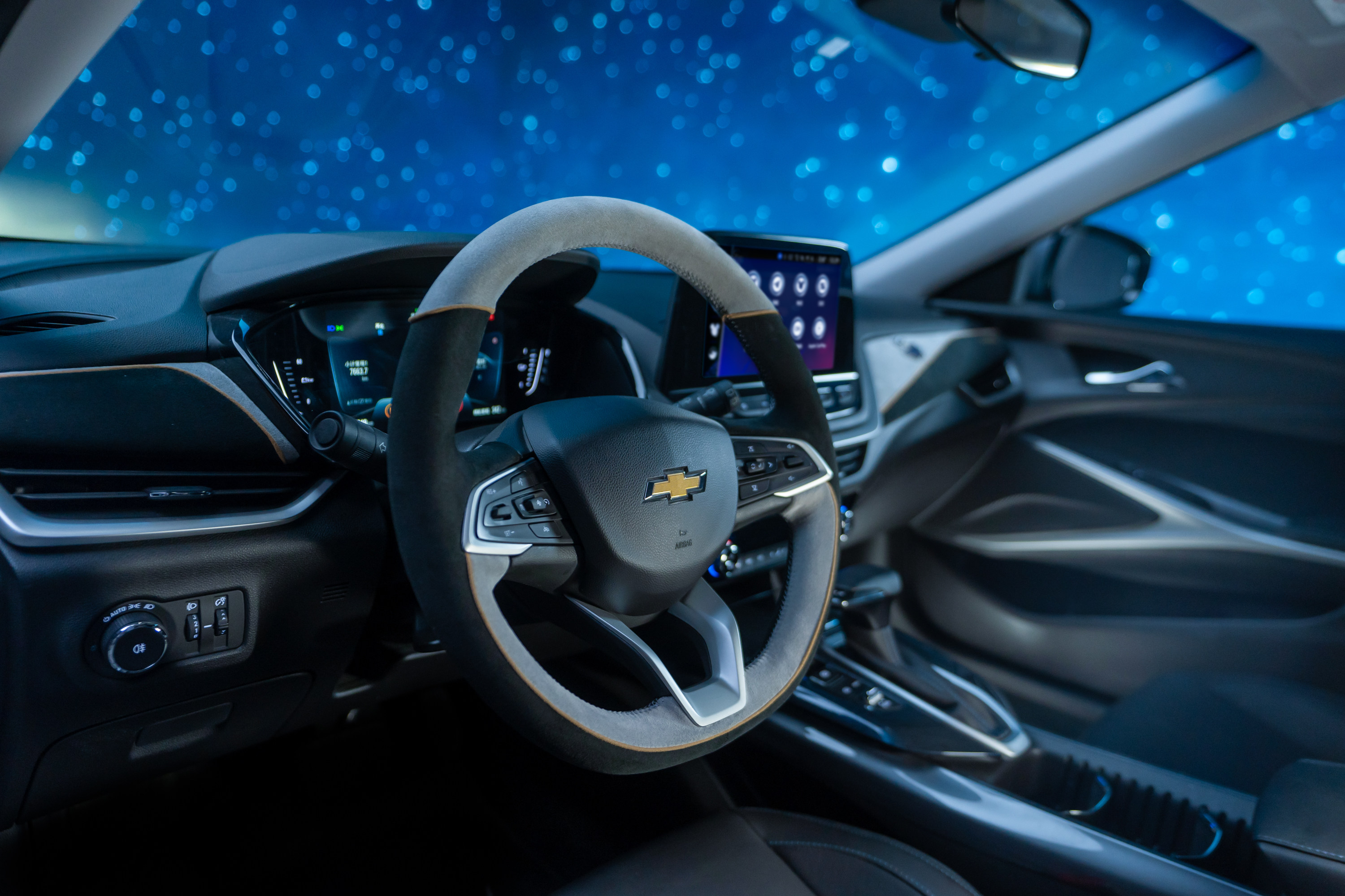 作为由雪佛兰与迪士尼推出的联名款新车,纯电畅巡米奇太空版在设计上极富想象与创新,将全球最受欢迎的米奇卡通形象化身为宇航员,与畅巡巧妙地融为一体,开启奇妙的星际之旅。在外观上,通过造型各异的专属车贴以及车身拉花,巧妙地融入宇宙、星空等元素,加之重新设计的Menlo Adventure徽标和巧然跃于车身上的宇航员米奇头像,令整车富有探索与历险的气息;在夜光星河全幕天窗上还布满太空探索和宇航员米奇的图案,巧妙营造出星际旅行的乐趣。