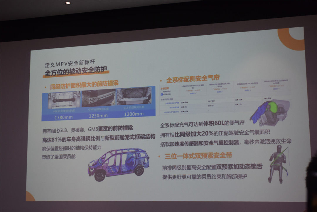 首先就是在被动安全方面,荣威iMAX8拥有比别克GL8、本田奥德赛、传祺GM8更宽的前防撞梁,为同级防护面积最大。并且还拥有高强度钢比例高达81%的车身与新型前舱笼式框架结构,确保偏置碰撞时的结构保持能力,塑造了坚固的乘员舱。