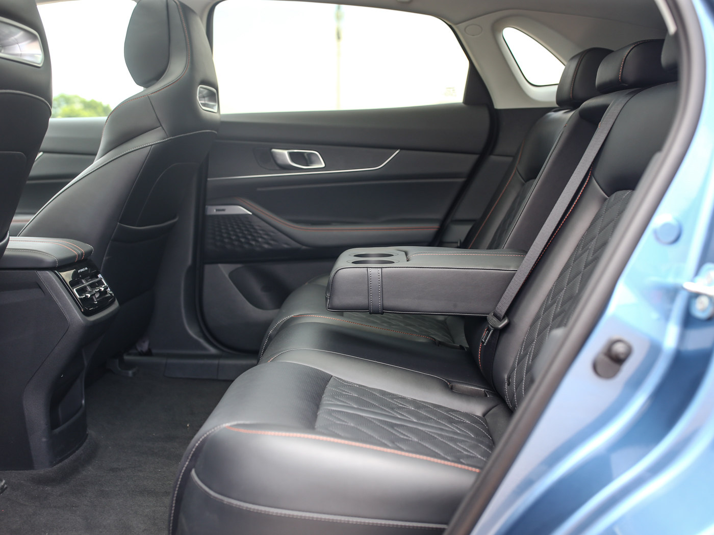 不仅腿部空间充裕,地台全平,而且在座椅非常厚实,填充物够软,坐上去有种“日产大沙发”的感觉,硬要挑刺的话就是后排车窗尺寸一般,视野不够开阔。