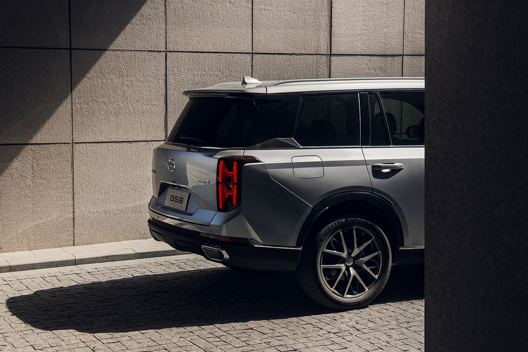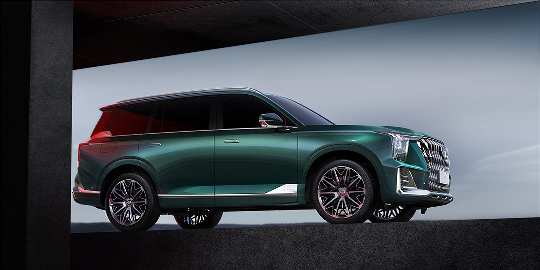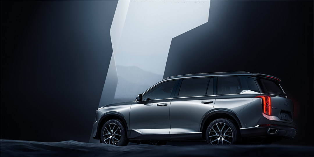 将目光转移到侧面,全新广汽传祺GS8的侧面设计更加复杂,这也是运用几何里面的六边形和菱形元素的缘故,比如D柱和前车门这几个地方,型面之间更加立体。另外,经典的悬浮式车顶设计还在,而且侧面还采用隐藏式门把手,让车型不单调也不臃肿。