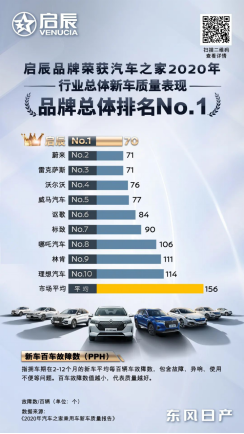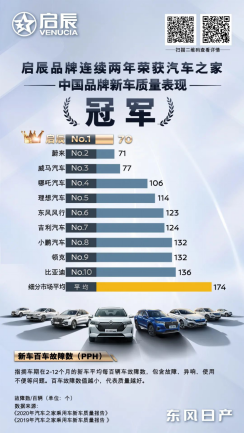 东风日产启辰始终秉持用户至上,产品至上的原则,坚持在高品质造车的基础上,以“智·趣科技”赋能,为中国消费者带来更加欣喜、愉悦的用车生活。得益于对“高品质”的坚守,东风日产启辰不仅收获百万用户的信赖与选择,更是获得了市场的高度认可。2021年3月15日,在汽车之家正式发布的2020年度《汽车之家乘用车新车质量报告》中,东风日产启辰不仅斩获中国品牌新车质量表现排名NO.1,连续两年夺冠。同时勇夺2020年行业总体新车质量表现—品牌总体排名NO.1。