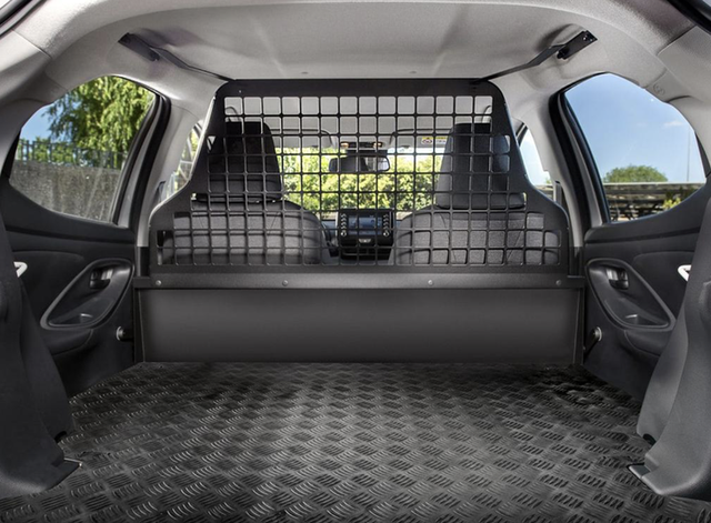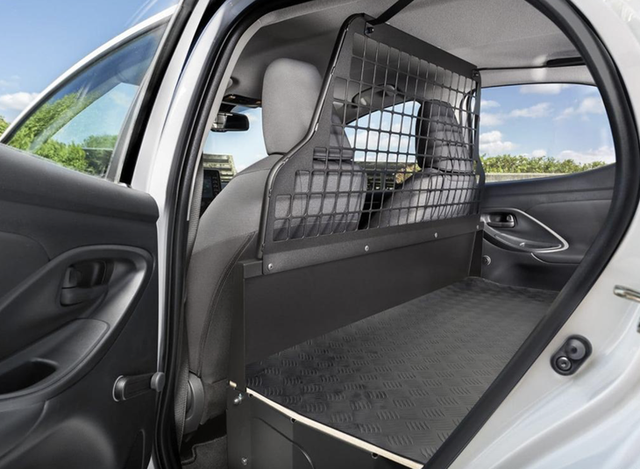 丰田YARiS Van的内部仅是采用两座布局,后排座椅被移除,取而代之是平整的橡胶材质地板,并形成了一个空间较大的货箱;新车内部中间还用金属丝将前排座椅和货箱隔开,应该是为了能够更好地堆积货物。另外,新车货箱的容量为720L,最多可以承载430kg的重量,同时还配备四个挂钩,应该是为了固定货物。