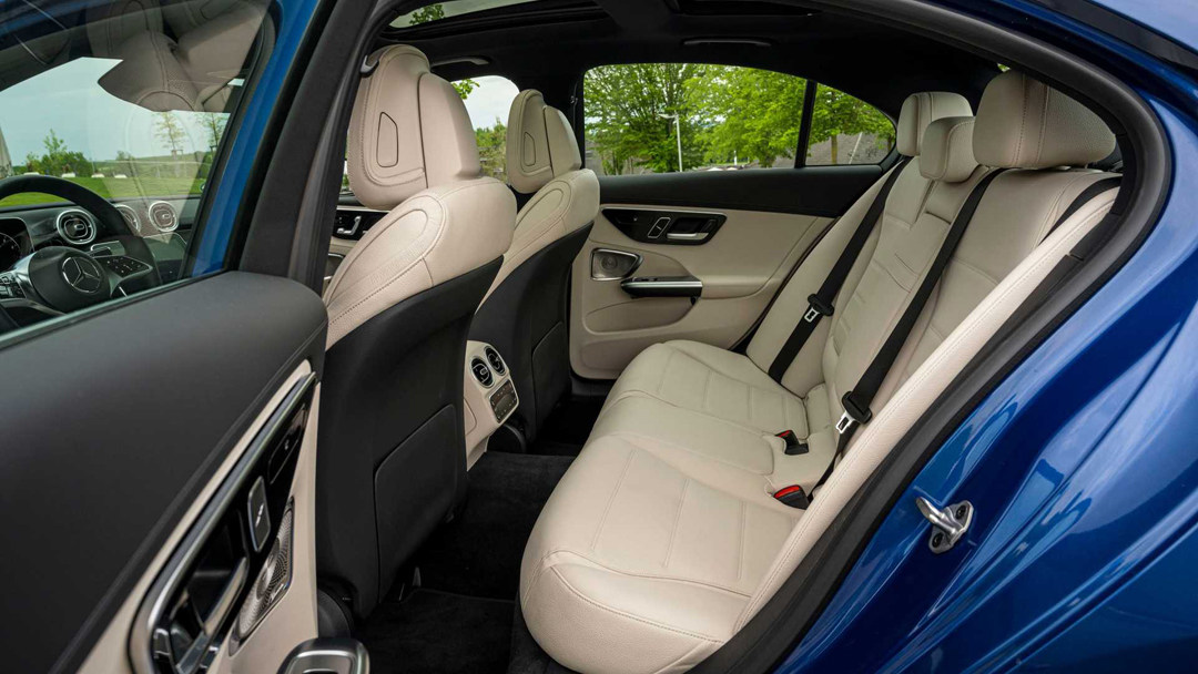 W206 C级整体内饰犹如缩小版的S级,大尺寸的液晶仪表和11.9英寸的中央显示屏幕给你足够的科技感,所有的木材、铝制件、皮革、氛围灯都让人感觉这是极优秀的设计案例。新的方向盘更是惊喜十足,尤其是AMG Line版本,使得该内饰被外媒成为同级最优秀的内饰。